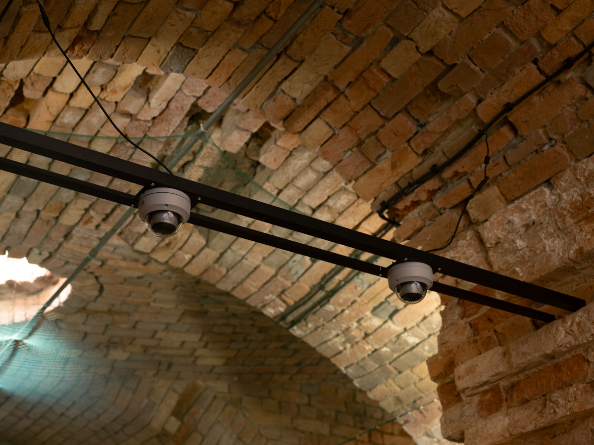 NIR.1, 2025, near-infrared light emitters, surveillance camera housings, metal armature dimensions variable