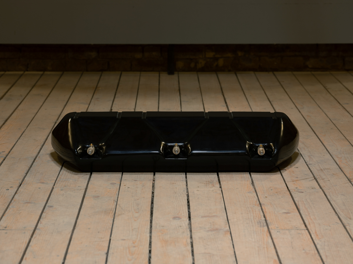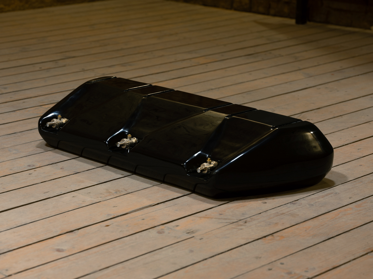 Reservoir, 2025, mdf, pigment, resin, pneumatic outputs 42 x 16.5 x 7in, 106 x 42 x 18cm