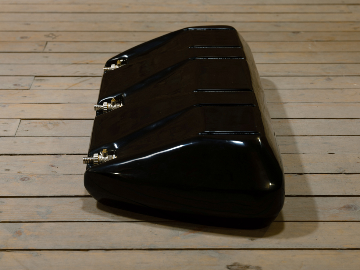 Reservoir, 2025, mdf, pigment, resin, pneumatic outputs 42 x 16.5 x 7in, 106 x 42 x 18cm